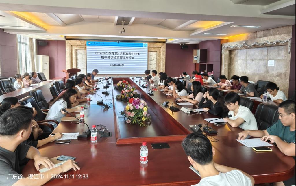 11月11日,海洋生物系在水产科技楼216会议室召开了2024-2025学年第1学期期中教学检查师生座谈会。海洋生物系刘丽、王中铎、郭昱嵩、焦钰、于非非、田昌绪、薛明、黄荣莲、郑哲、石红娟、张艳苹、廖健等专任教师代表,以及生物科学专业18个教学班员工代表出席本次座谈会,会议由海洋生物系副主任杨创业主持。座谈会上,各班代表围绕本学期的理论课和实验课教学、创新创业教育、毕业论文设计、班级学风以及专业建设与就业等方面提...