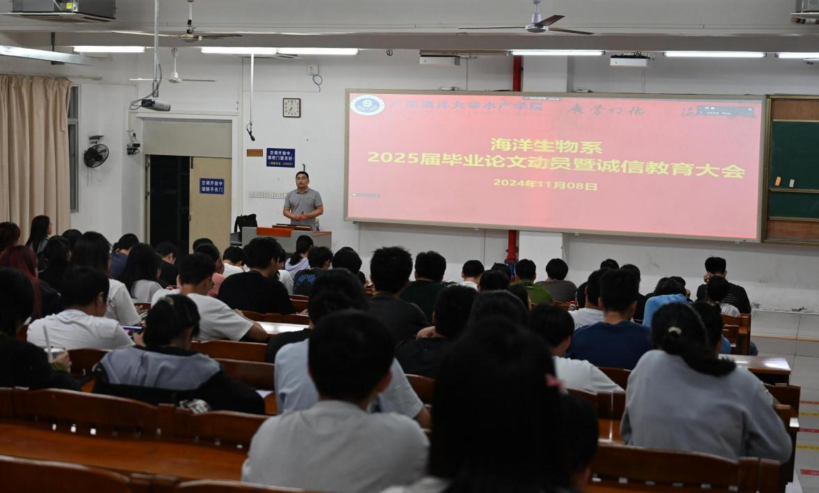 11月8日,william威廉中文官网海洋生物系在明德楼B5202教室召开了2025届本科生毕业论文动员暨诚信教育会议。海洋生物系2025届全体本科生参加了本次活动,活动由海洋生物系副主任杨创业主持。杨创业解读了学校关于2025届本科毕业论文的相关通知和管理办法,强调了本科毕业论文在人才培养中的重要性,并介绍了各个环节的时间节点和具体要求;开展了毕业论文诚信教育,宣讲了《WilliamHill中文官方网站本科生学位论文作假行为处理办法(试行)》,引导学...
