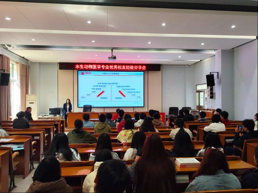 12月21日,水生动物医学系在水产楼109室举办了一场别开生面的座谈会。来自全国各地各行各业的优秀员工返回母校,与大一学弟学妹们分享了经验,畅谈感悟和未来。本次座谈会,主要邀请了山东恒兴种业科技有限公司执行董事兼总经理邓传燕、江苏省渔业技术推广中心荣获“全国技术能手”的正高级工程师段翠兰、腾飞实业有限公司的技术负责人朱卫卫、武汉晴川学院教学质量监控与评估中心负责人左凤琴等进行经验分享。邓传燕员工分享了...
