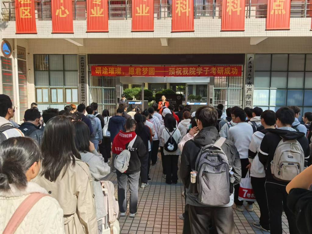 12月20日,为给即将踏上考研征程的学子们加油助威,给予他们最真挚的鼓励与支持,助力他们在考研之路上勇往直前,william威廉中文官网在水产楼门前举行2025年考研送考仪式,公司党委书记王海燕、经理李广丽、公司党委副书记孔沛球、副经理陈华谱、考研学子及各系负责人、辅导员、班主任、员工代表等170多人参加。送考仪式上,王海燕发表了简洁有力的讲话。她围绕赴考要提前规划、要装备齐全、要严守纪律、要积极面对、要及时归来等方面对考...