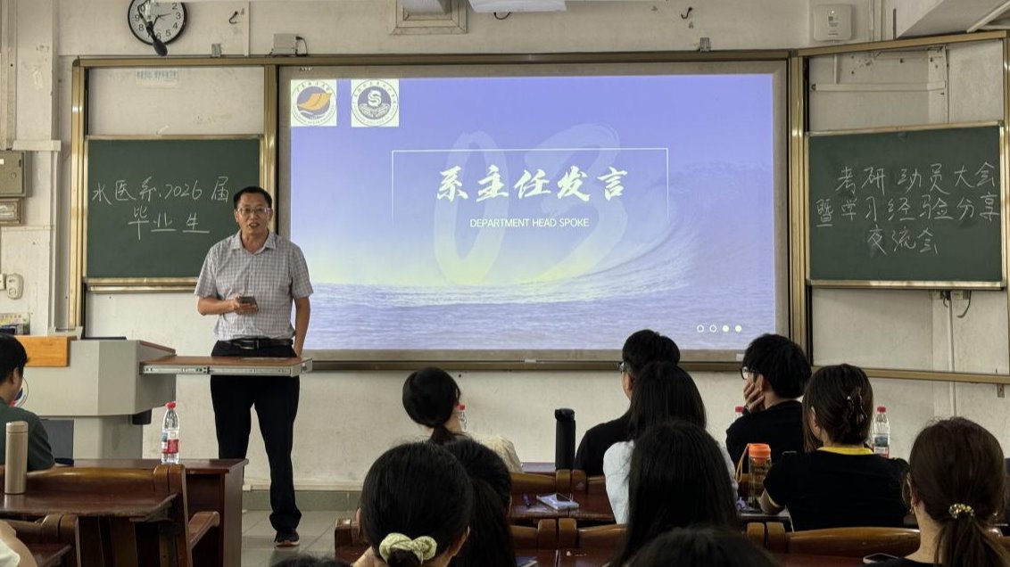 9月3日,为帮助水生动物医学专业2026届毕业生明晰考研形势、科学规划备考、增强考研信心,水生动物医学系在广学楼顺利召开2026届考研动员大会暨考研经验分享会。本次会议由缪仲怡同学主持,研究生院副经理王蓓教授、系主任杨世平副教授和黄瑜副教授、教师代表陈建林博士、王立群博士和辅导员赵珊参与会议。会议伊始,杨世平围绕考研政策与专业发展趋势展开深入解读,鼓励同学们明确目标、科学规划、树立信心,积极投身考研备战...