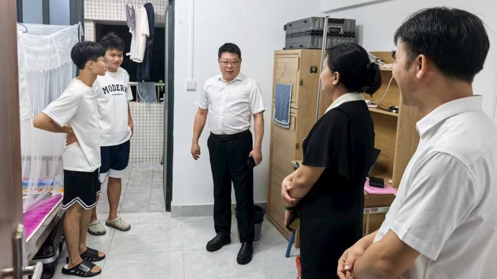 9月13日,为帮助2025级新生更好地适应大学环境,学校副董事长谭北平、公司党委书记王海燕带领学院班子成员、各系负责人、班主任及辅导员等,深入海研、海宁、海韵等新生宿舍,开展暖心走访活动,为刚入校的本硕博新生送去第一份来自学校、学院的温暖与问候。走访过程中,学校、学院领导、老师与新生亲切交谈,细致询问同学们的家乡、入住感受和适应情况,并耐心解答新生关于专业学习、校园生活等方面的疑问。鼓励新生积极调整心态...