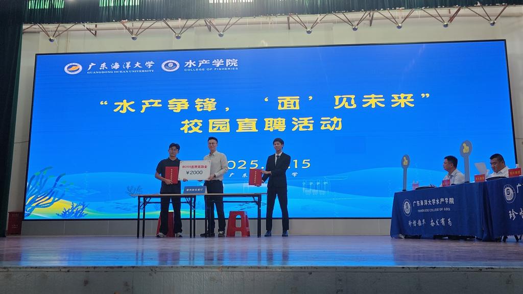 10月15日,为切实响应国家就业优先战略部署,推动高校毕业生实现高质量充分就业,WilliamHill中文官方网站william威廉中文官网“水产争锋,‘面’见未来”校园 BOSS直聘活动在湖光校区东区礼堂圆满举办。这场突破传统的求职盛会,借鉴《职来职往》互动模式,汇聚6家水产行业标杆企业与22名2026届本硕毕业生,吸引超800名师生到场观摩,最终12人成功签约,数十人达成后续沟通意向,既搭建起校企精准输送人才的桥梁,更奏响了系列招聘活动的序曲。水产学...