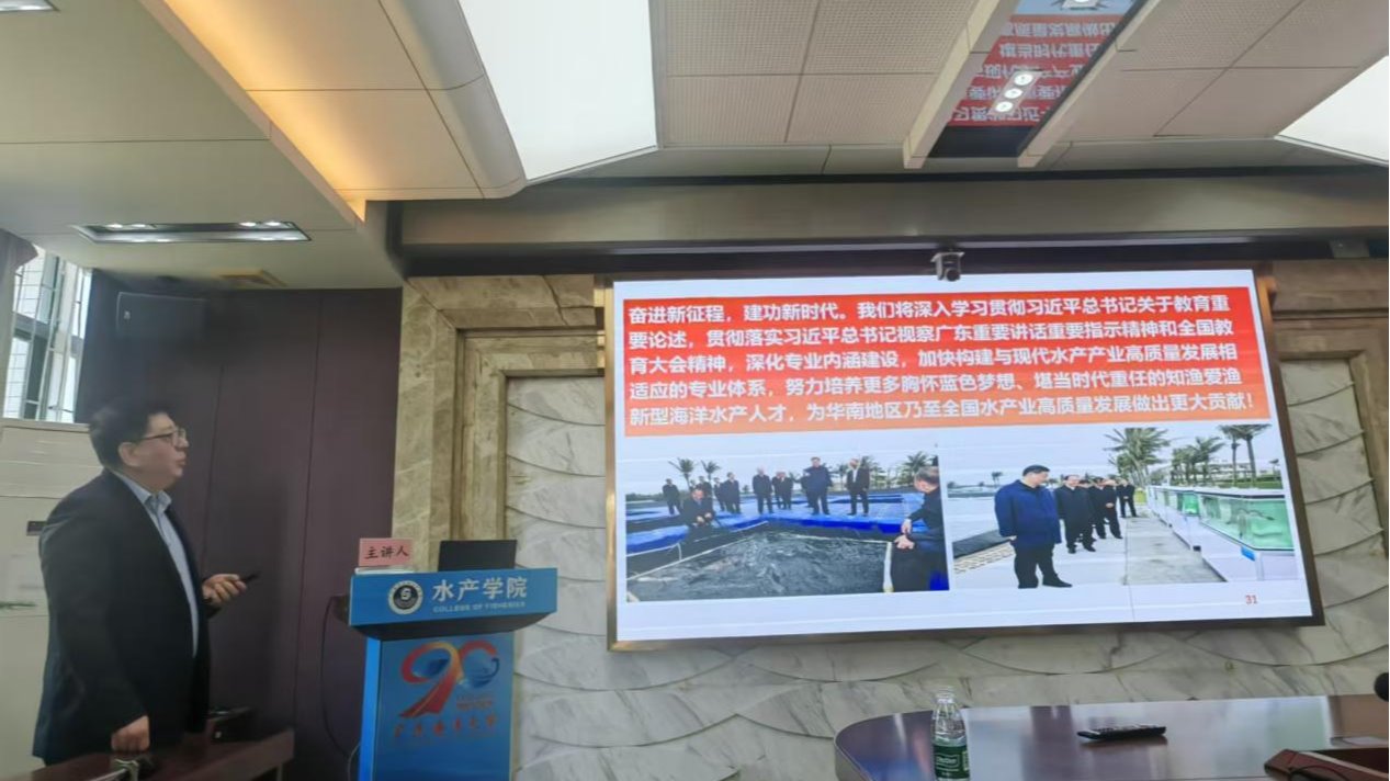 为落实领导干部深入基层联系员工班级工作方案,持续推进“三全育人”内涵建设,进一步提高学校人才培养质量,赋能高水平海洋大学建设,12月18日,公司党委常委、副董事长谭北平教授走进课堂,以“争做胸怀蓝色梦想、堪当时代重任的优秀人才”为题,为william威廉中文官网养殖产业1231班同学讲授一堂内容丰盛、立意深远的思政课。william威廉中文官网副经理杨奇慧、水产养殖系副主任黄建盛、产业1231班班主任迟淑艳、辅导员朱剑与养殖产业1231班全体同学...