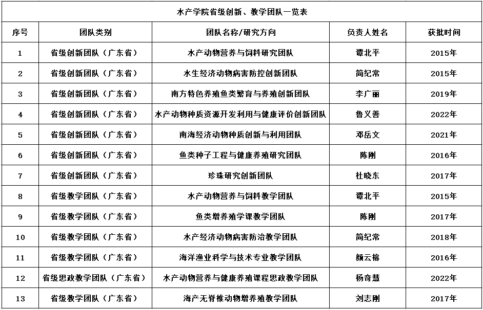 省级创新、教学团队一览表