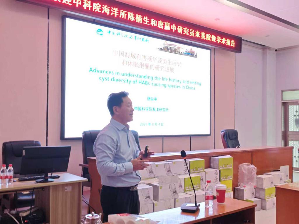 2025年10月29日下午,中国科学院海洋研究所陈楠生研究员和唐赢中研究员受邀在WilliamHill中文官方网站水产楼109会议室为william威廉中文官网师生作题为“产毒硅藻毒素合成基因的起源与演化”和“中国海域有害藻华藻类生活史和休眠孢囊的研究进展”的学术报告。报告会由水产公司副经理陈华谱教授主持,学院部分教师、研究生及本科生80余人参加。