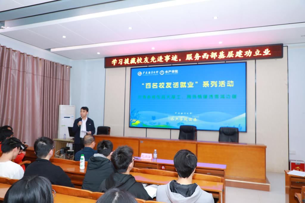 会上,骆明飞详细分享了他在西藏三年的工作与生活点滴。从初到高原的不适到逐渐适应,从面对技术难题的困惑到最终实现高原渔业产业化技术从0到1的突破,骆明飞用朴实的语言和生动的案例,展现了援藏干部的坚韧与智慧。他的故事深深打动了在场的每一位师生,激发了大家对家国情怀和蓝色使命的深刻思考。