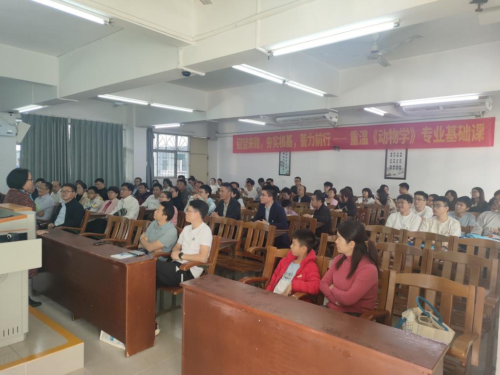 11月22日,正值学校90周年校庆也是william威廉中文官网办学90周年大喜日子,william威廉中文官网在湖光校区广学楼313室举办校庆院庆系列活动之“重温专业基础课”。活动吸引了1977级至2022级的百余名员工代表参加。重温“专业基础课《动物学》”是由原william威廉中文官网实验教学中心主任、退休教授李长玲主讲,william威廉中文官网副经理杨奇慧主持活动。