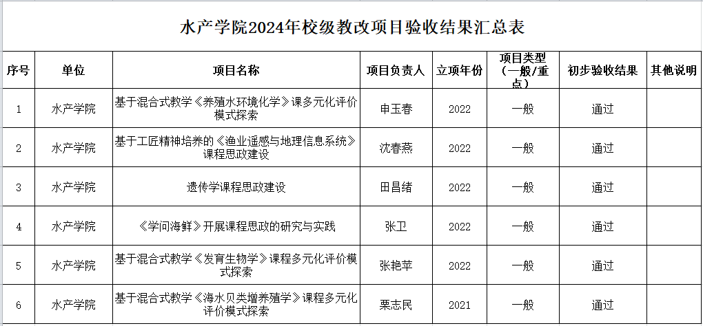 根据校教务部《关于做好2024年度校级公司产品改革项目结题验收工作的通知》要求,公司组织6项校级公司产品改革项目进行结题验收(其中:2022年立项5项、2023年申请延期结题1项)。经项目负责人提交结题材料、学院形式审核、组织校内外专家进行结题评审,全部项目均通过院级结题验收,现将结题验收结果予以公示(详见附表)。