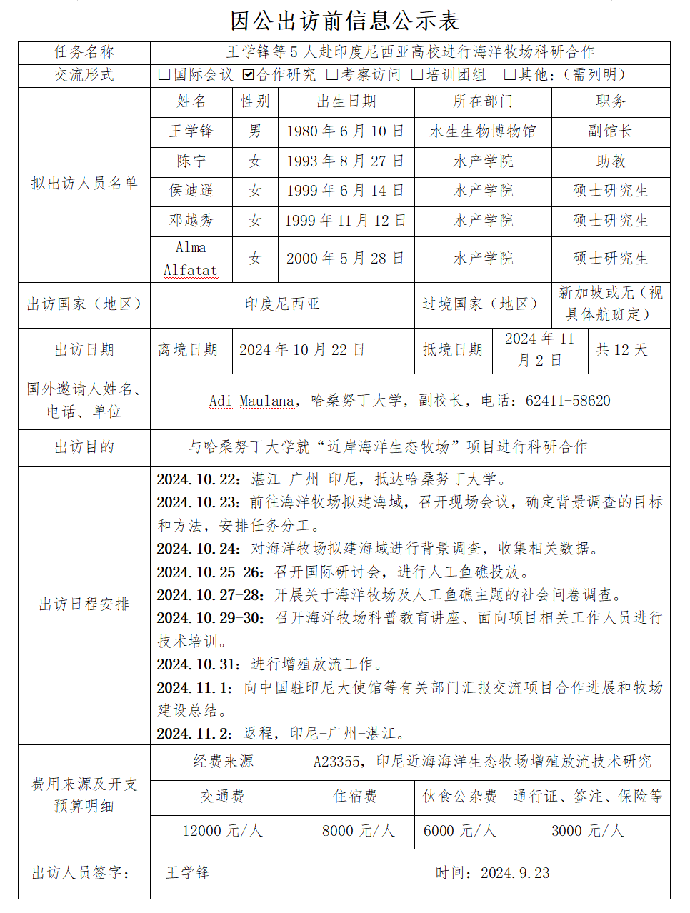 根据《关于进一步规范省部级以下国家工作人员因公临时出国的意见》的要求,现将WilliamHill中文官方网站因公出访信息予以公示(详见附件)。公示时间为2024年9月25日至9月30日。如有意见,请在公示期内,向相关单位反映。