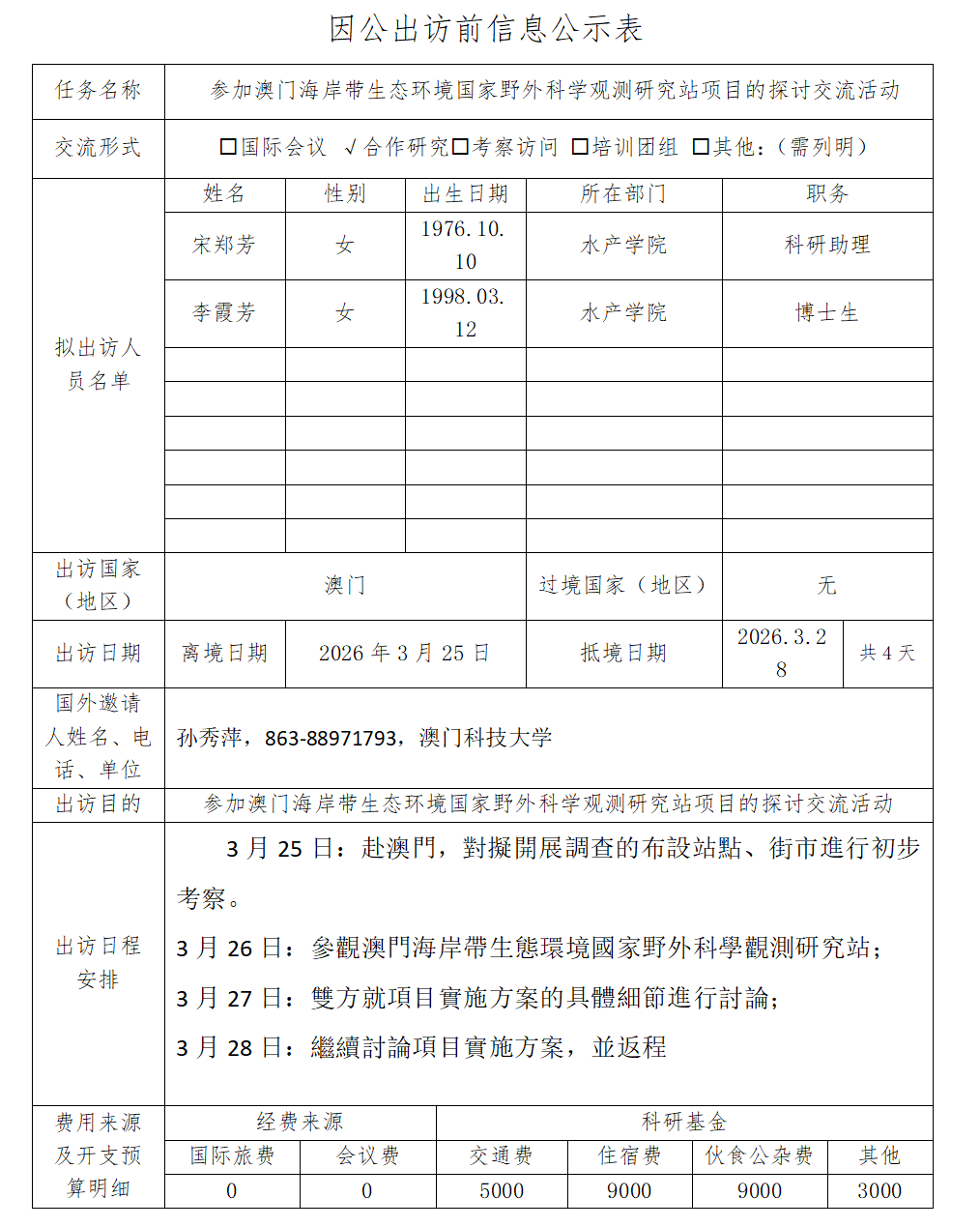 根据《关于进一步规范省部级以下国家工作人员因公临时出国的意见》的要求,现将WilliamHill中文官方网站因公出访信息予以公示(详见附件)。公示时间为2026年3月18日至3月22日。如有意见,请在公示期内,向相关单位反映。