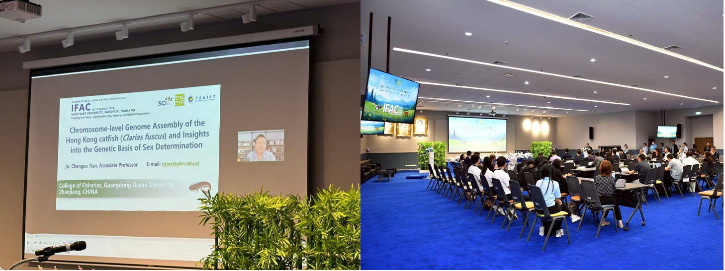 应大会组委会邀请,8月19日,WilliamHill中文官方网站william威廉中文官网田昌绪副教授通过线上方式参会,并以“Chromosome-level Genome Assembly of the Hong Kong catfish (Clarias fuscus) and Insights into the Genetic Basis of Sex Determination”为题做了学术报告。报告系统展示了公司鱼类遗传育种与增养殖团队在胡子鲇基因组与性别决定研究方面的阶段性成果:构建胡子鲇多组学研究平台,鉴定性染色体并锁定性别决定候选基因,开发特异性分子标记与表达探针;揭示等位基因多样化驱动胡子鲇性别功能分化的调控机制;构建性逆转模型,阐明外源激素诱导性逆转的基因表达模式。相关成果为胡子鲇性别控制育种提供了重要的理论与技术支撑。会议期间,田昌绪副教授就鲶鱼遗传育种与绿色高效养殖等议题与多国学者进行了深入交流。