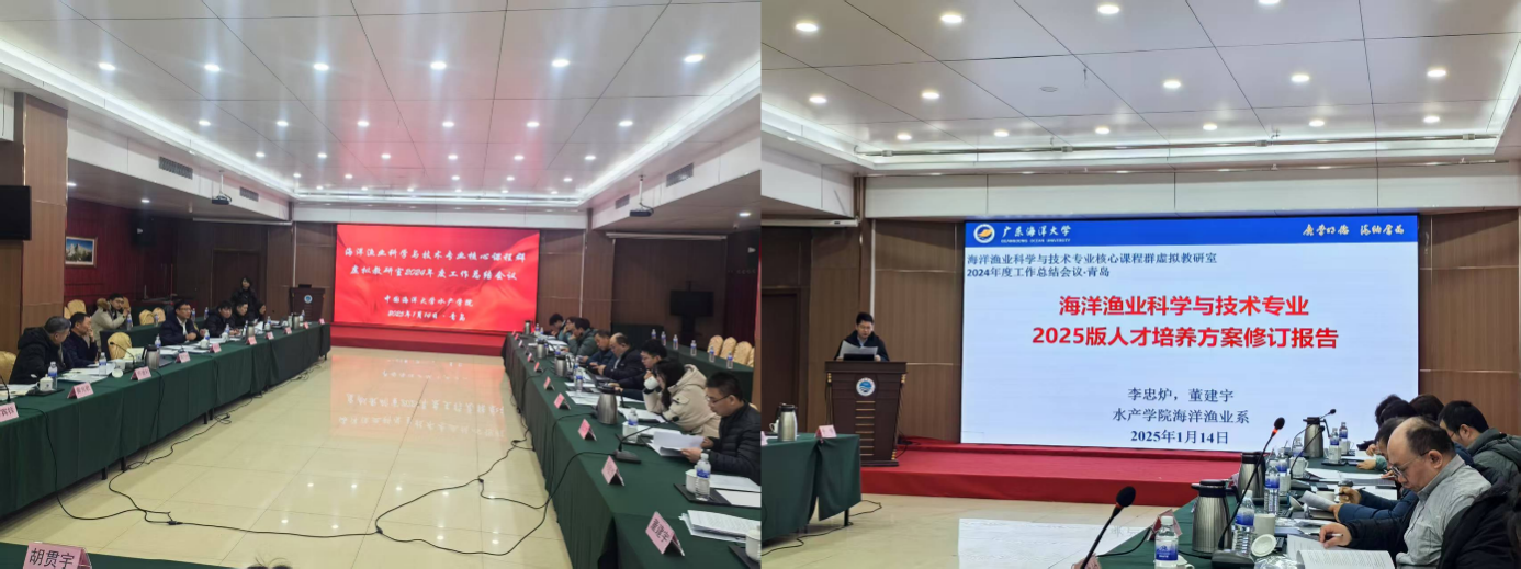 2025年1月14日,教育部海洋渔业科学与技术专业核心课程群虚拟教研室(以下简称“海渔虚拟教研室”)2024年工作总结会在青岛中国海洋大学学术交流中心隆重召开。本次会议由中国海洋大学主办,来自全国各高校海洋渔业科学与技术专业的负责人和教师代表齐聚一堂,共商海渔虚拟教研室发展计划。公司海洋渔业系主任李忠炉、副系主任董建宇及教师代表吴仁协教授参加了此次会议。