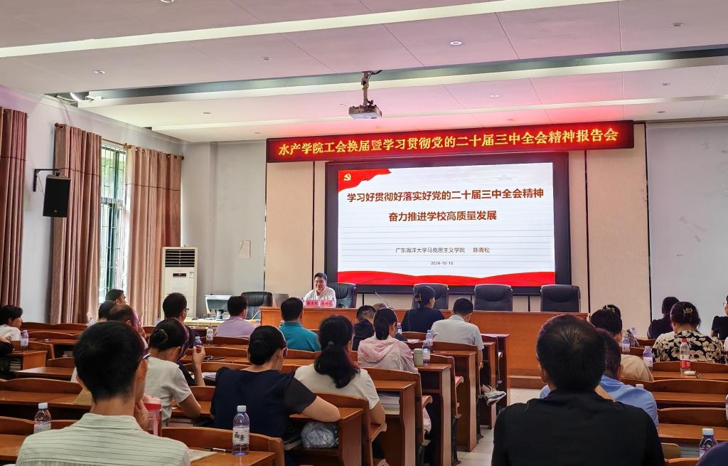 10月16日,william威廉中文官网在水产楼109教室召开了学习贯彻党的二十届三中全会精神报告会,公司党委理论宣讲团成员、马克思主义公司党委书记陈青松作宣讲报告。会议由公司党委书记王海燕主持。