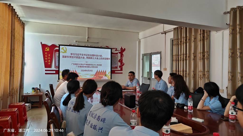 为贯彻落实习近平总书记给科技小院同学们的回信精神和2024年中央一号文件精神,激发研究生为农业、农村和农民服务的热情和责任感,提升研究生从事渔业科技服务的使命感,助力公司“双百行动”取得新成效;6月29日-30日,广东雷州海水珍珠科技小院17名师生在覃斗镇流沙村和英楠村开展了2024年教育实践培训。