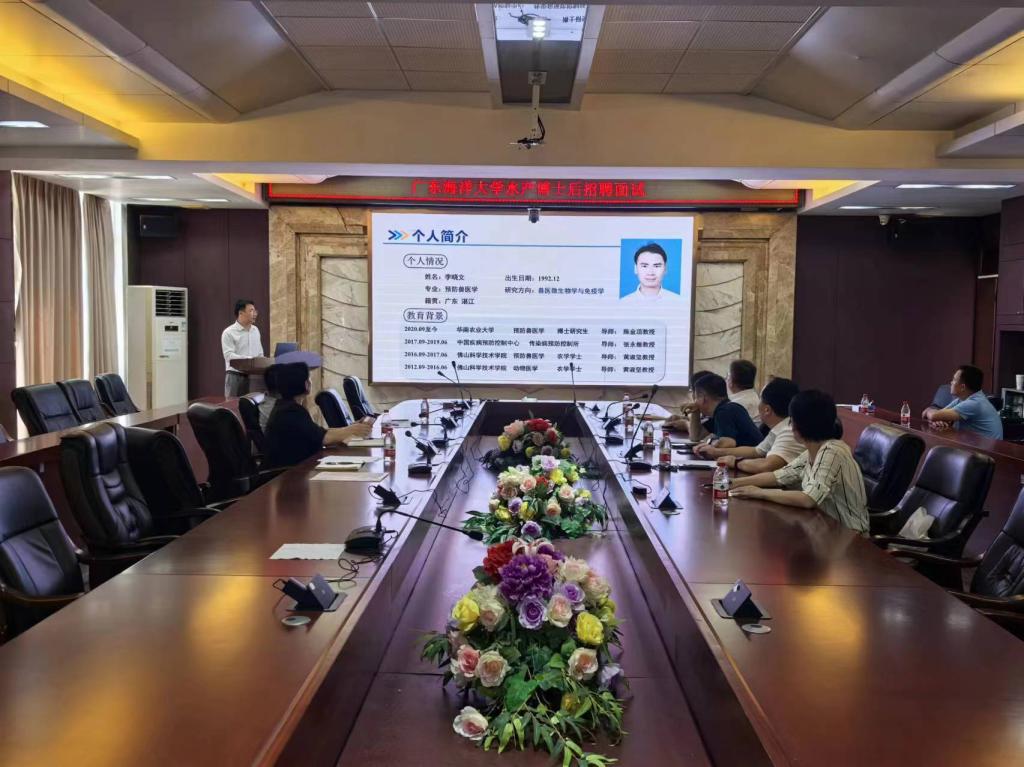 6月21日,公司首批博士后入站考核面试在水产楼216顺利进行。人力资源部、水产博士后流动站相关工作人员及博士后合作导师参加面试,面试考核由教师发展中心副主任史黎黎主持。
