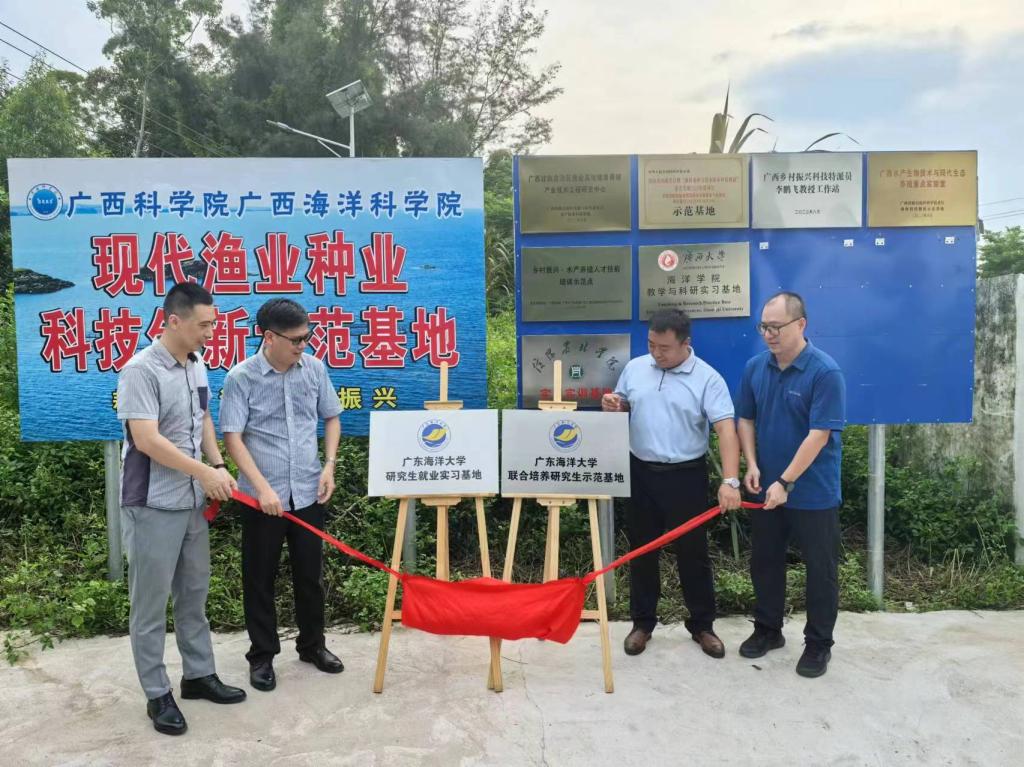 一行参观考察了广西科学院广西海洋科学院现代渔业种业科技创新示范基地,了解了该基地运营模式和石斑鱼养殖、病害防控等情况,并在该基地进行了联合培养研究生示范基地和研究生就业实习基地挂牌。广西科学院广西海洋科学院李鹏飞研究员详细介绍了海洋科学院的发展情况并就研究生联合培养和就业实习进行了充分交流。