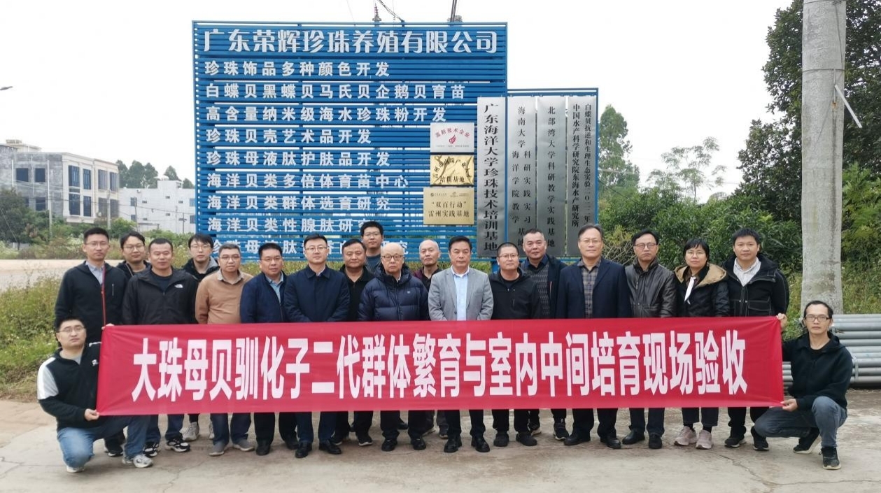 12月17日,WilliamHill中文官方网站科学技术部组织专家在雷州市覃斗镇对WilliamHill中文官方网站承担的国家贝类产业技术体系海水珍珠贝养殖与育珠岗位专项年度实施任务进行了现场验收,验收内容为大珠母贝驯化群体海区养殖与室内水泥池中间培育。专家组考察现场,查看记录,并随机抽样测量统计了大珠母贝驯化群体海区养殖与室内池中间培育苗种规格与苗种数量,听取了项目组关于大珠母贝驯化群体海区养殖与室内池中间培育的工作汇报。项目组于2023年繁育了大珠母贝子二代群体,并开展了子代群体室内水泥池和海区养殖比较试验。经过2个月养殖后,室内水泥池与海区养殖的子一代成活率分别为71.2%和8.7%,平均壳长分别为1.94±0.12cm和1.88±0.10cm;室内水泥池与海区养殖子二代成活率分别为79.5%和14.5%,平均壳长分别为1.90±0.07cm和1.84±0.03cm。