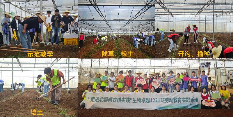 参观结束后,同学们分为五组,亲身体验通心菜的大棚种植。在认真听取农技师的讲解,仔细观摩动作要领之后,大家分工协作,除草、松土、开沟、播种、培土、洒水,于挥洒汗水中感受劳动的快乐与辛劳。经过两个多小时的劳动实践,同学们不仅感受到了农耕实践的魅力,体验到了粮食的来之不易,更是深刻体会到理论联系实际的重要性。
