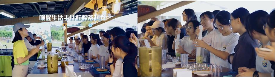 此外,同学们还体验制作产业园特色产品——香水柠檬茶,在这过程林晓云语重心长对员工说道:“如果生活给你一颗柠檬,那就把它做成柠檬茶;也许它只是一杯柠檬茶,但从一颗柠檬到柠檬茶的销售却大有不同”。关颖怡同学感悟道,这启示我们要发散思维,将现有的资源和其它适合的东西结合,以实现更大的收益。人生是旷野,不是单行道,我们要多听多看多思考,路才会越走越宽。