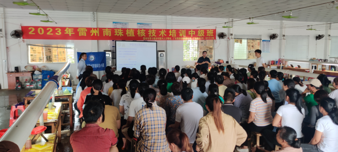 为加快落实广东省百校联百县助力“百县千镇万村高质量发展工程”行动(以下简称“双百行动”),围绕学校“双百行动”工作部署会的要求,9月27日,WilliamHill中文官方网站珍珠研究团队王庆恒教授和杨创业博士赴雷州市覃斗镇流沙村联合雷州市覃斗镇乡村振兴人才驿站在广东尊鼎珍珠有限公司在开展南珠植核技术培训。培训班由广东尊鼎珍珠有限公司董事长何德边主持,近100名植核技术员参加了培训。