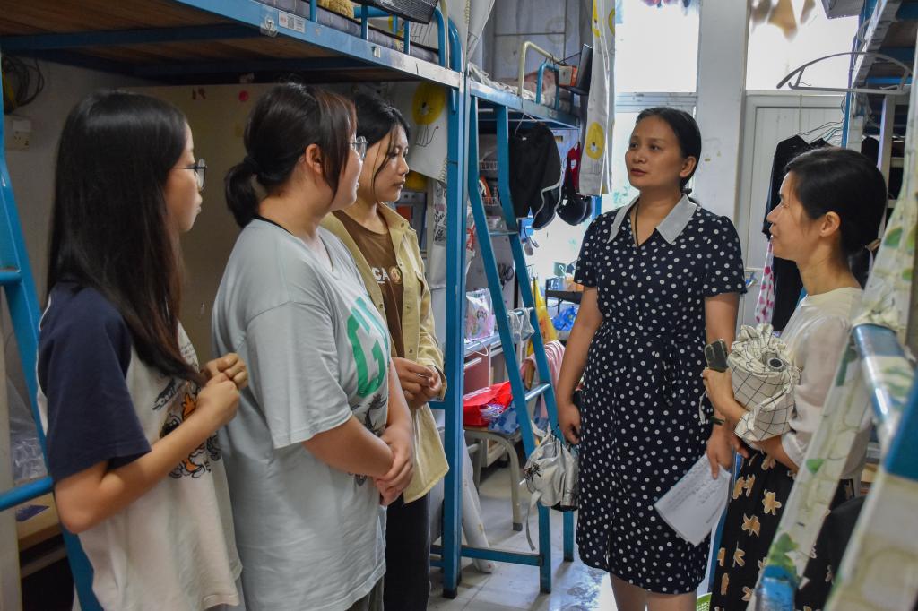 9月10日上午,公司党委书记王海燕、经理李广丽、副经理邓岳文、副经理申玉春带领各系负责人、全体辅导员、新生班主任冒雨走访2023级新生宿舍,与每一位新生交流,送去学院对全体新生的问候与关怀。