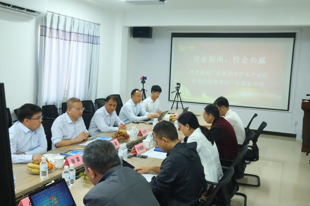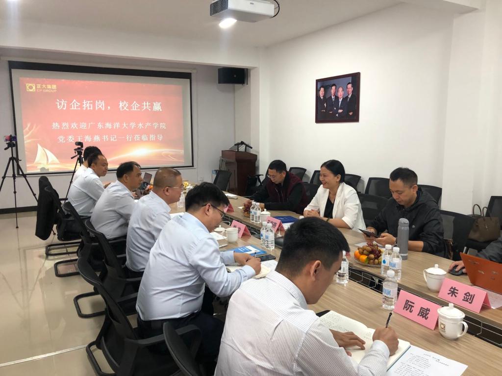 3月16日上午,公司党委书记王海燕率养殖系王忠良主任、养殖系杨世平副教授、办公室孔沛球主任、辅导员朱剑老师一行等赴正大集团卜蜂水产(湛江)有限公司开展访企拓岗促就业活动。正大集团卜蜂水产(湛江)有限公司总经理姚俊,正大集团水产饲料事业广东广西人力总监副、总经理张蕾,正大集团湛江区水产事业财务总监、副总经理马文平,卜蜂水产(湛江)有限公司迈特场场长郭小瑞等出席交流活动。