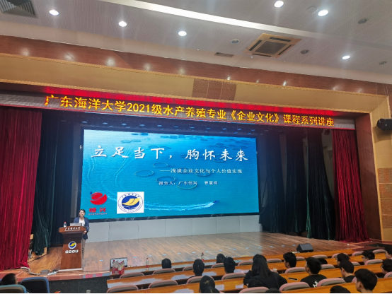 3月5日,根据“产业班”人才培养方案,广东恒兴集团人力资源总监王友国、人事部经理曹慧明在主校区多功能厅,为共建产业学院的首届产业班开讲《企业文化》第一讲。公司党委书记王海燕、养殖系副主任黄建盛、产业班班主任汤保贵,以及2021年级水产养殖专业同学参加了报告会。