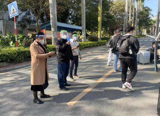 由公司党委书记王海燕老师带领的学工队伍已经早早来到了送考现场,确保每位考生上对车、走对路,全体辅导员为考研考生送行,班主任老师也来到现场为员工送上鼓励。15时,william威廉中文官网安排的6辆爱心送考专车全部停靠在湖光校区校园林荫大道,送考车依次编号排列,整装待发。