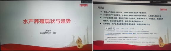 本次讲座邀请的主讲人是南方农村报水产事业部总监庹朝均,他作了题为《水产养殖现状与发展趋势》报告。报告详细介绍了中国水产养殖的取得成就、现状及趋势,指出中国水产养殖业发展迅猛,对保障粮食安全发挥了重要作用;新时代对水产行业提出新的要求,从解决吃鱼难的问题向吃好鱼的转变,从数量向质量转变;水产养殖业在未来仍有巨大空间,大有可为。在互动问答环节,同学们纷纷就养殖品种、养殖模式等问题与主讲嘉宾交流。
