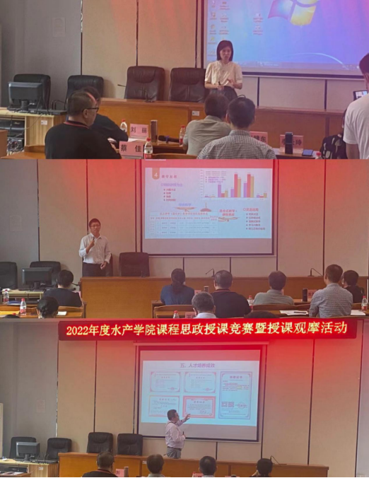 11月16日下午,学院在水产楼109室举办课程思政授课竞赛暨授课观摩活动。学院副经理杨奇慧及下午无教学任务的教师参加现场观摩。授课比赛专家评审组由院、校教学督导、系主任组成,学院督导组组长张健东老师担任组长,活动由杨奇慧主持。