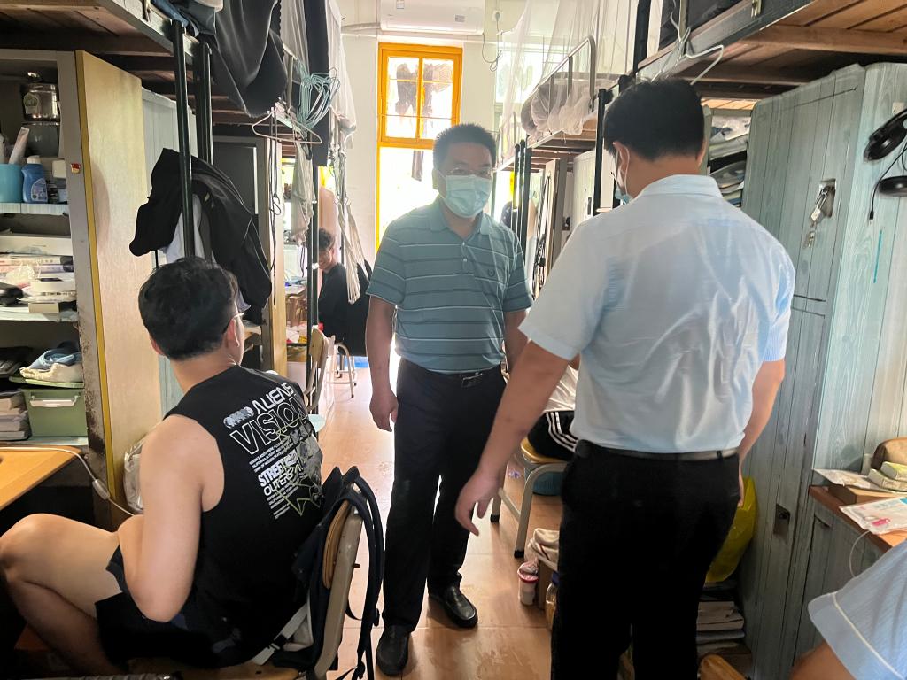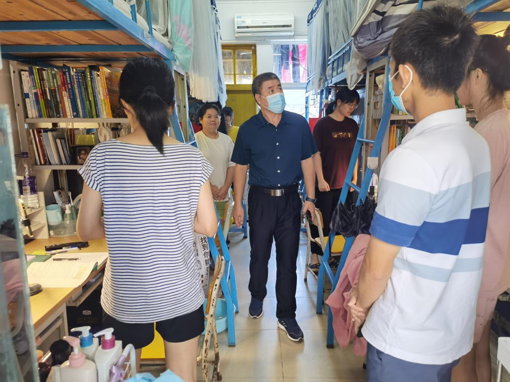 “开学第一天状态适不适应啊?”“上网课的效果怎么样啊?”“在学校学习生活有什么困难没有?”……走访过程中,每到一间宿舍,学院领导和老师们都与同学们进行亲切交谈,耐心了解同学们的思想、学习、生活状况,仔细聆听了同学们的需求。与此同时,叮嘱同学们要特别注意搞好宿舍卫生,保持经常通风,做好防护,加强体育锻炼,督促员工认真做好线上线下学习,养成良好的学习习惯,确保学习有成效。