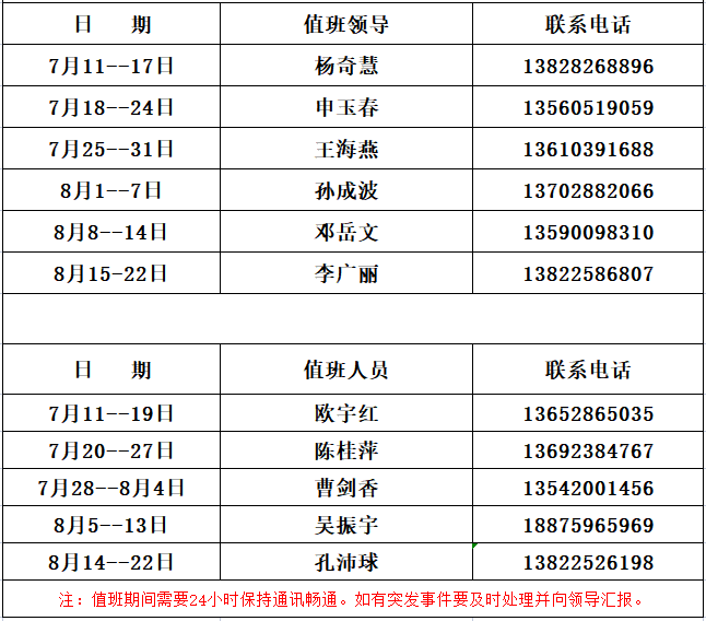 william威廉中文官网2022年暑假值班表