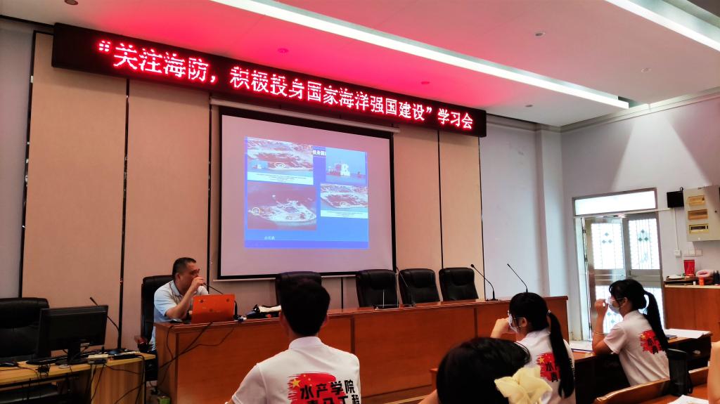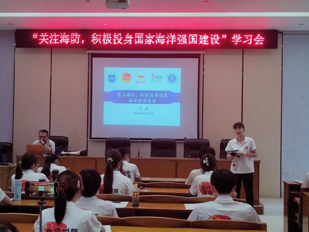 为增强公司青年学子关注国家海防意识,鼓励积极投身国家海洋强国建设。6月29日,公司第六期“青马工程”培训班在水产楼109举办“关注海防,积极投身国家海洋强国建设”学习会。本次学习会由辅导员朱剑老师主讲,约40名“青马”学员参加。