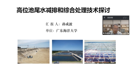 公司孙成波教授应邀参会并分享了“地膜型三池两坝”对虾高位池养殖尾水减排和综合治理技术案例,他建议治理要减治并重,引导和推广生态环保养殖技术,尾水减排和综合治理同步进行,同时可以提高养殖成功率,减少病害的发生,促进产业可持续发展;建议做前期评估,地方做好养殖容量评估和养殖规划,养殖场建设前要提前做好进水和尾水处理应急方案和长期方案;建议尽快制订标准,地方可以根据国家标准,制订地方标准,日常过程加强宣传和监管。