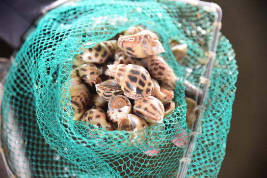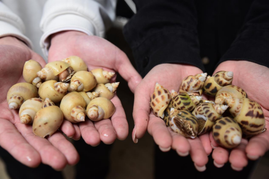 在养殖户与团队地热情介绍下,团队成员了解到不少有关东风螺在真实养殖中所面临的一些困难及疑惑。例如:在东风螺养殖过程中,难免会遇到螺疾病发作的情况,而发病的一些东风螺的螺壳上且表现为白色,正常情况下应表现为有呈附梯或红褐色的四方形斑块。在病螺恢复健康后,螺壳上依然为白色而不会重新长出呈附梯或红褐色的四方形斑块。目前市面上,却少有收白色螺壳的商户,这对养殖户的收益产生不少的影响。而吕文刚博士明言,这将会是未来科研团队要研究了解的方向之一。