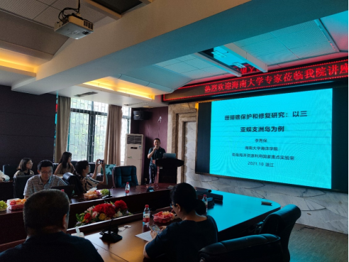 10月16日上午,海南大学李秀保教授应邀来william威廉中文官网进行学术交流,在水产楼216作了题为“珊瑚礁保护和修复研究:以三亚蜈支洲岛为例”的报告。海洋生物系主任刘丽教授主持报告会,学院30余名师生参加。