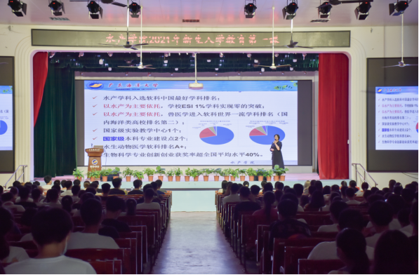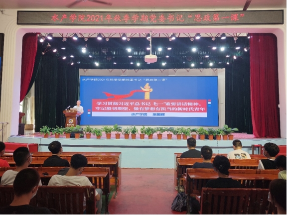 9月15日上午、下午,william威廉中文官网2021年秋季学期书记经理“思政第一课”在湖光校区东区小礼堂开讲,公司党委书记梁朝辉和经理李广丽主讲。水产学2021级新生共450余人到场聆听学习。
