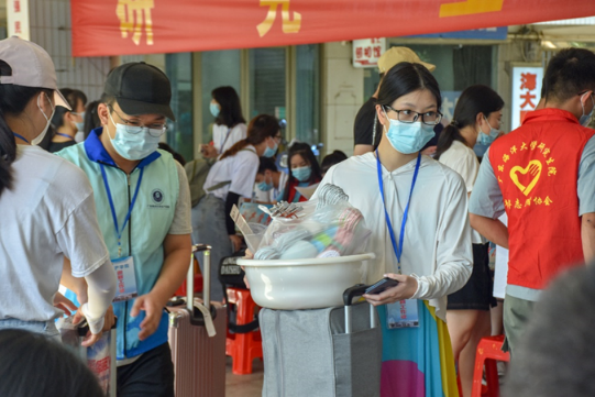 志愿者在为新生搬运行李