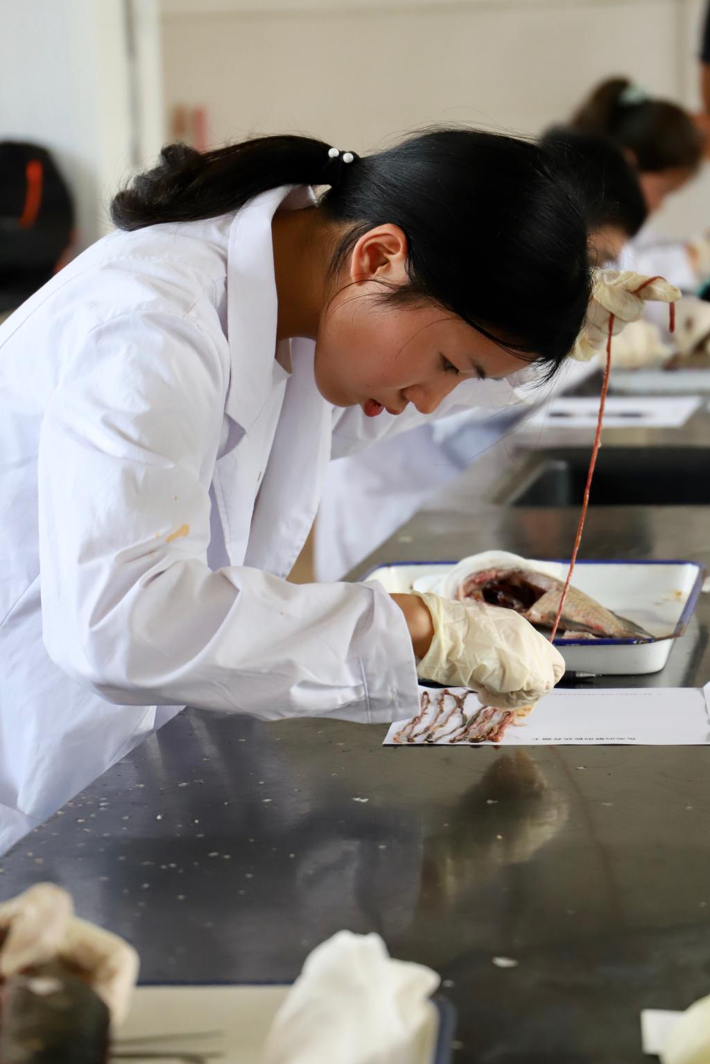 开幕式结束后,与会嘉宾兴致勃勃地参观了兴海楼本科实验室,并与参加水产技能比赛的评委老师和员工进行了交流。