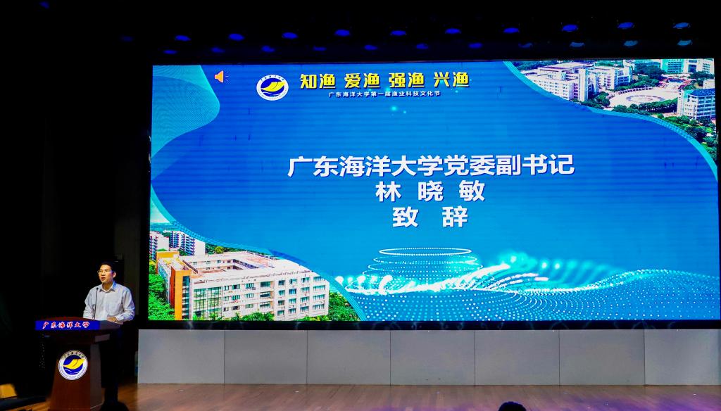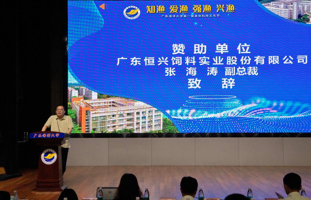 林晓敏代表公司党委对活动的召开表示祝贺,对广东恒兴饲料实业股份有限公司长期以来对公司教、产、学、研的支持表示感谢。他强调,渔业科技文化节在活动设计遵循文化为基、技能为梯、科研为导的逻辑架构,在内容安排上涵盖了文创作品征集、专业技能比拼和学科前沿启蒙,有利于增进同学们对渔业行业认同感与专业自豪感,实现启智树德、健体育美的良好教育效果,贯彻落实“为党育人、为国育才”办学使命。