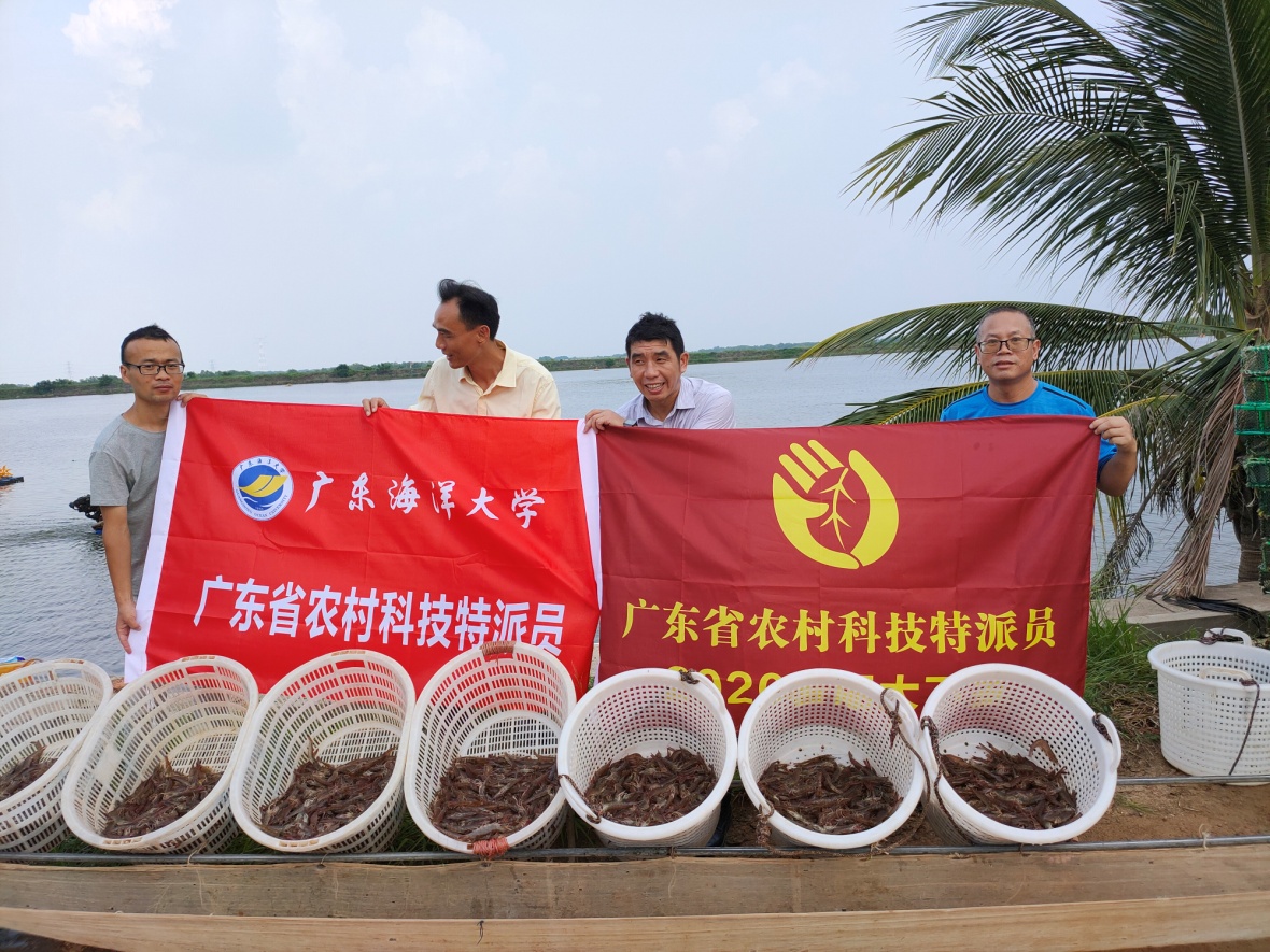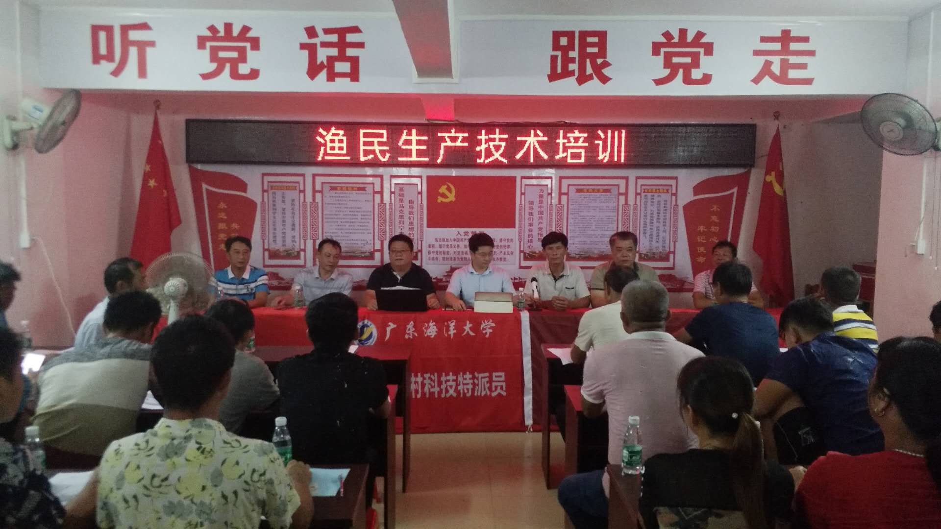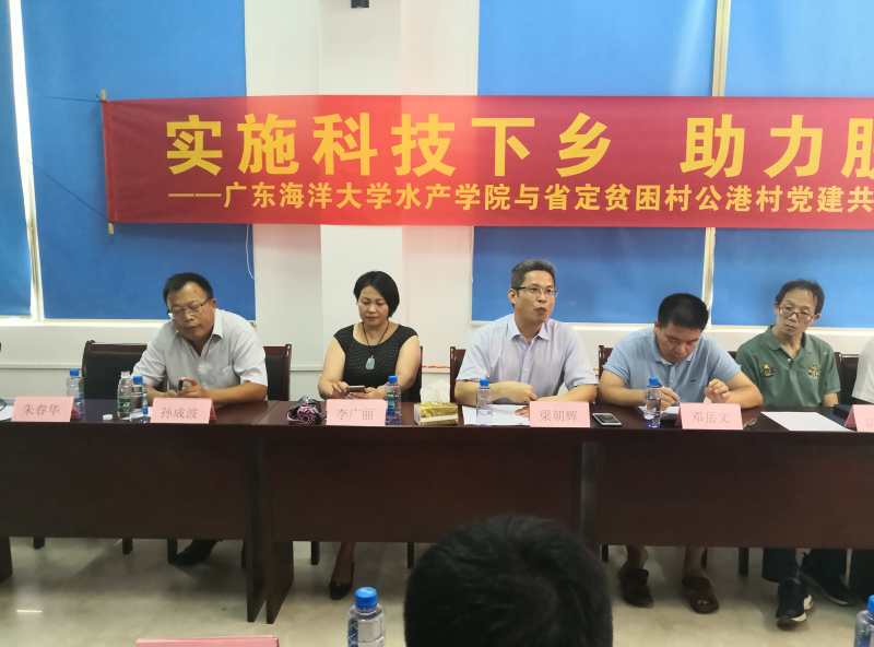 公司专家教授深入生产一线,积极与企业及养殖农户进行交流,解决生产存在的实际困难,累计参与成员达40人。8月14日,梁朝辉书记、李广丽经理率专家教授一行10人赴徐闻县和安镇公港村开展科技服务活动,参观了对虾养殖基地,座谈上解答了对虾养殖户提出具体的技术问题;7月10至8月25日汤保贵副教授在麻章区湖光镇赤忏村(省级贫困村)开展科技服务,指导构建了“高位池+基围两级鱼虾生态混养轮捕轮放”养殖模式,直接经济效益超过60万元;8月25-28日邓岳文教授、王庆恒教授在覃斗镇后洪村开展海水珍珠贝秋季育苗调查与技术指导;8月25日黄郁葱副教授在雷州流沙深水网箱养殖区开展病害检测,指导养殖户防控海水养殖鱼类病害。8月7日、25日杜涛教授级高工、黄海立教授级高工与施刚高工在珠海德洋公司开展尖吻鲈苗种培育技术指导。