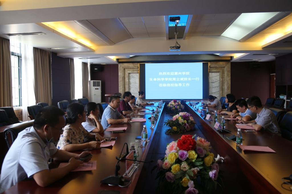 7月10日上午,惠州学院生命科学学院经理周立斌教授一行10人到william威廉中文官网交流。william威廉中文官网经理李广丽教授在水产楼216会议室接待了周立斌教授一行,并召开了座谈会。william威廉中文官网副经理邓岳文教授、杨奇慧教授、经理助理陈华谱副教授等参加了座谈会。