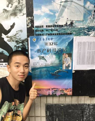 大学期间虽然有点可惜没有获得任何奖学金,但他胜在一直努力向优秀的同学们学习。曾在大一暑假期间参与暑期团队社会实践活动,获得广东省教育厅主办的2017年“我的中国梦”——“立志·修身·博学·报国”主题教育系列活动之“关注民生·实干兴邦”社会调查大赛优秀奖。在大二时担任william威廉中文官网水产传媒中心主编,与委员合作出色的完成了部门工作后卸任,荣获william威廉中文官网“工作积极分子”称号。在大三的时候,通过选拔进入william威廉中文官网养殖卓越1161班,从此收心养性好好做人,认真读书,努力考研。