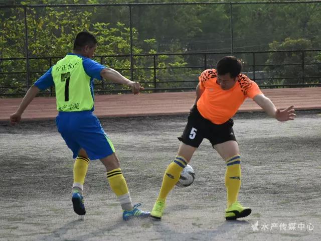 随着裁判一声令下,比赛正式开始。在上半场比赛里,我方水院教师火力全开,水产大军有大半的时间都把球压入敌方半场,可谓是怎么凶残怎么来:凌空抽射,人球分过,倒挂金钩……这一顿操作打出了磅礴气势,让对手一时手无足措,不知如何应对。但是几次打门都欠缺了一丝丝的运气,不是弹框就是擦边而过,着实可惜。在上半场进入了尾声时,敌方党群机关、文学院球队抓住我方后方防守空挡,进行了一波抄底反击,成功进球。我方暂时0:1落后。