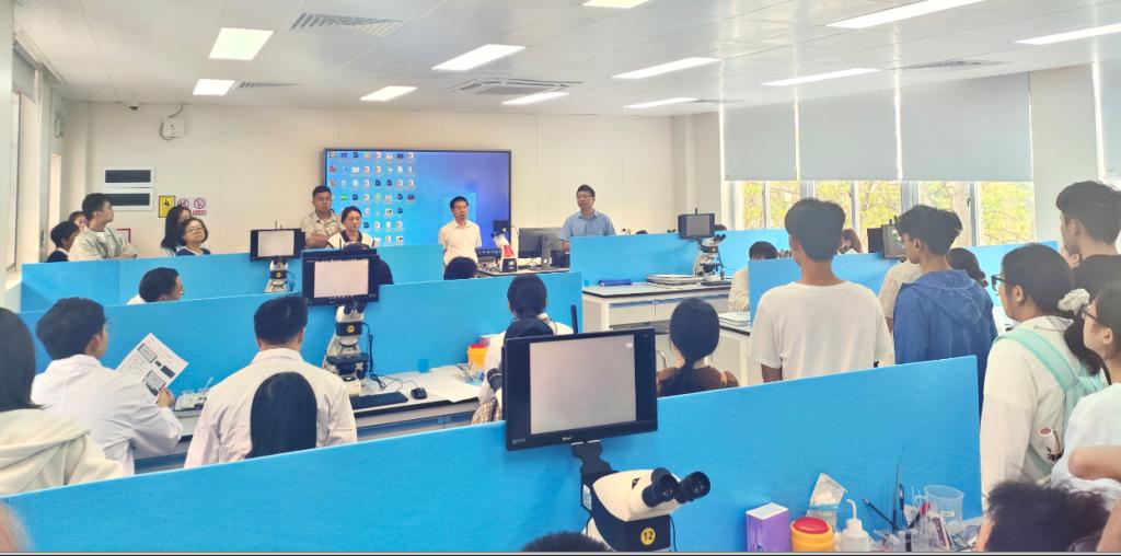 自9月始,中心每周定期组织统筹会议,并进行了3轮次以上的桌面推演和实地演练,确保专业技能模块达到“零缺陷”标准。赛前,中心教师和员工志愿者们连续奋战,完成了显微成像系统的调试、饲料原料分装、解剖工具布设等工作,精准完成了100余套竞赛工位的布置,并对近300尾实验活鱼和1000余件水产经济动物样本进行了健康筛查,确保比赛耗材的质量。