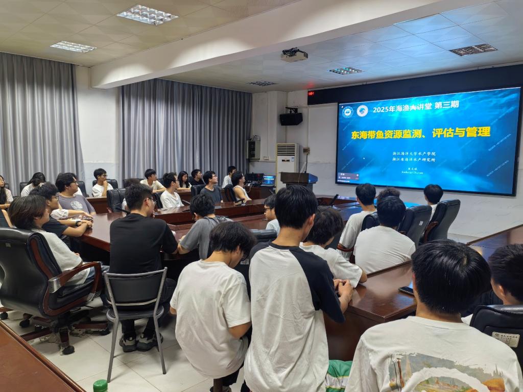 11月1日,教育部海洋渔业科学与技术专业核心课程群虚拟教研室举办2025年第三期“海渔大讲堂”。全国10余所涉海类高校300余名师生以线上和线下相结合的方式参加活动,本次活动特邀浙江海洋大学朱文斌教授作“东海带鱼资源监测、评估与管理”报告。公司在水产楼322会议室设置分会场,海洋渔业科学与技术专业国家一流本科专业建设点骨干教师与部分员工60余人线上参会。董建宇主持分会场活动。