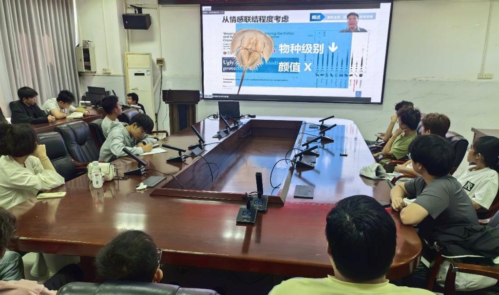 本次活动集美大学关杰耀教授围绕“中国鲎保护与修复”主题,系统介绍了中国鲎生态习性、种群现状及保护难点,以及栖息地修复、人工繁育放流等关键技术与成功案例,并探讨海洋开发与物种保护的平衡路径。师生就中国鲎监测、繁育、增殖等问题深入交流,学术氛围浓厚。