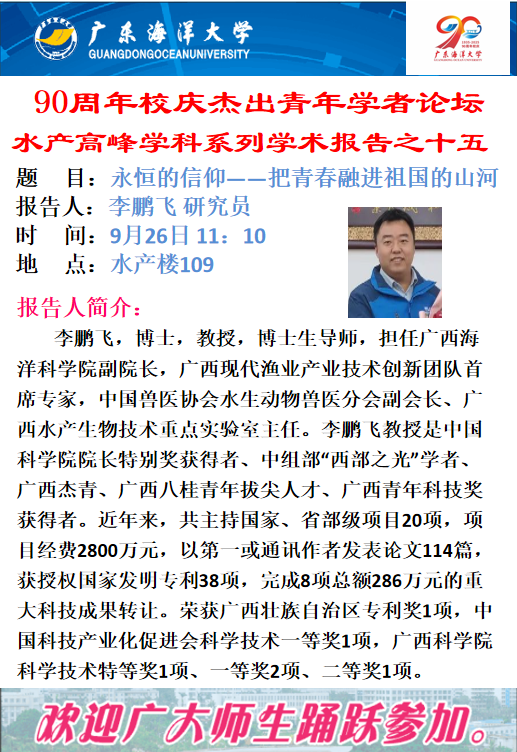90周年校庆杰出青年学者论坛暨水产高峰学科系列学术报告之十五