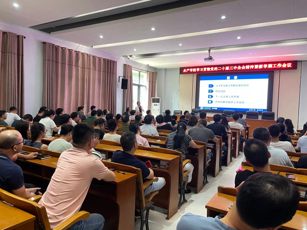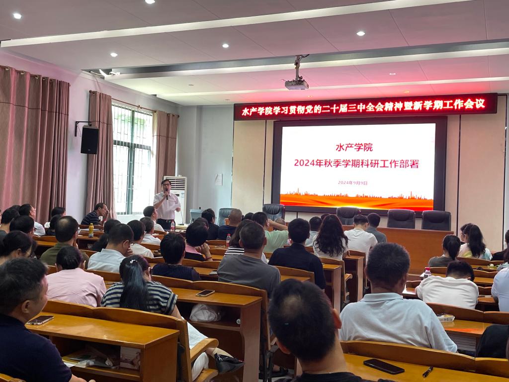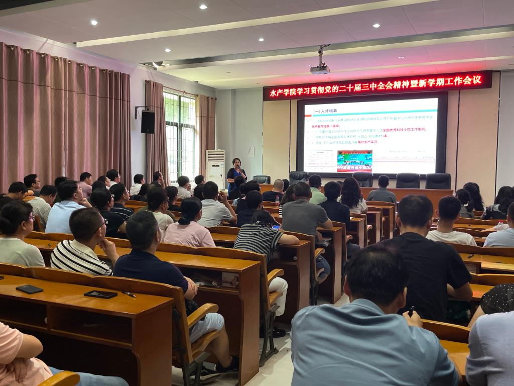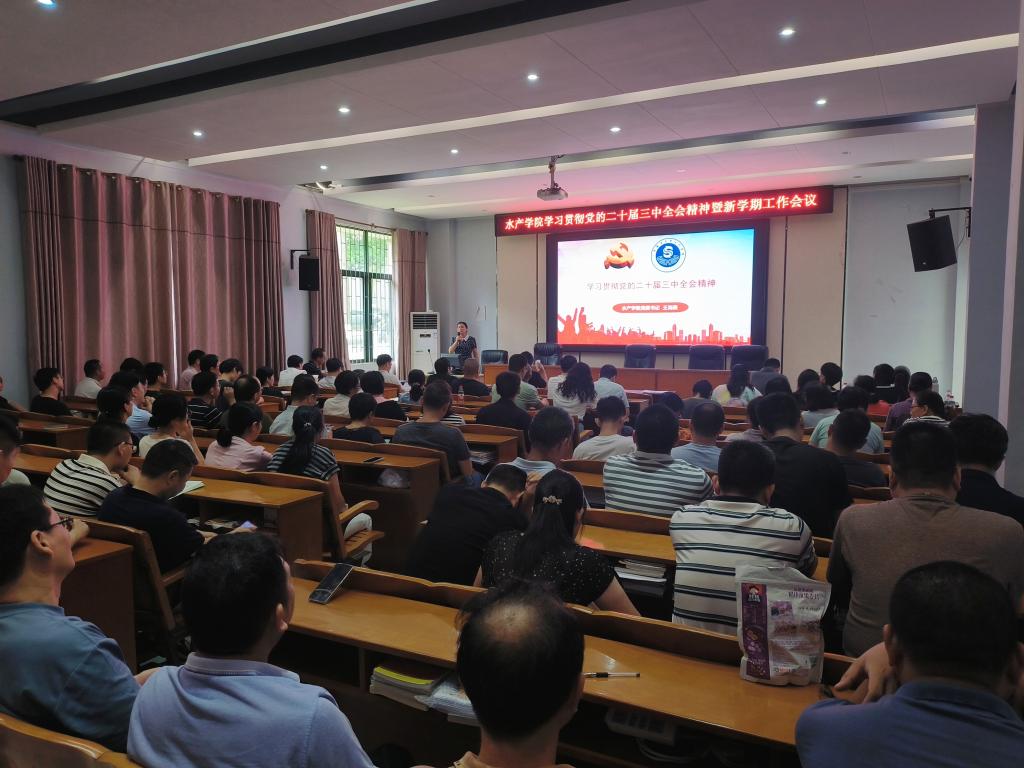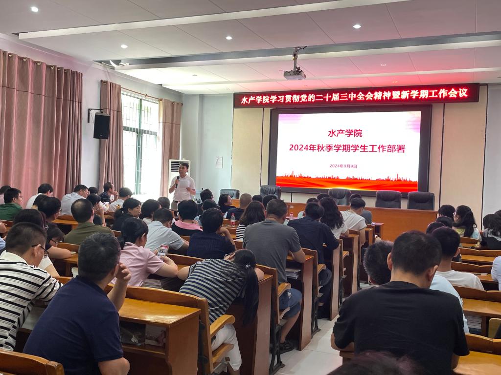 2024年9月9日,学院在水产楼109召开了学习贯彻党的二十届三中全会精神暨新学期工作会议。会议由孔沛球副书记主持,全院100多名教职工参会。